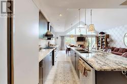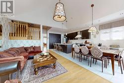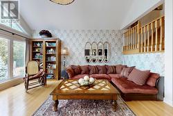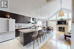 Gorgeous bungaloft on a 50 FT RAVINE lot in a quite cul-de-sac. Natural lights*large windows throughout*West exposure. 4+2 bedtrooms * 4 full bath. Forest views blended w/backyard gardening from the entire rear of the home. This home features large porch*double 8 ft entrance door*hardwood/laminate floors*potlights*brand name chandeliers*granite/quartz c-tops*main floor laundry w/access to garage, cabinets and pantry*upgraded baths w/custom cabinets,frameless glass enclosures & showers. Eclectic style of home design creates a unique, personalized, cohesive space in a thoughtful balanced way. Open concept family room and kitchen*18 FT vaulted ceiling*custom fireplace. Large living/dining perfect for family get together. Modern chef's kitchen w/granite countertop*oversized centre island w/breakfast bar*3-section built-in pantry*extended chef's desk*6- burners gas stove. Large breakfast area-perfect for both everyday cooking and entertaining. Main level includes large Master suite with walk-in closet and 5-pc ensuite, plus a second bedroom with semi-ensuite access. Upstairs, the loft features two spacious bedrooms and a 4-pc bath. Beautifully finished basement with large above ground windows in family room and bedroom-with walk-in closet, massive great room, 4 pc bath w/free standing tub and shower. Plenty of storage rooms. Step outside to your private backyard paradise with deck, patio, trees, bushes, perennial landscaping and a lush, sprinkler-fed lawn perfect for summer entertaining. A family-friendly neighborhood close to everything that matters. Walking distance to schools, library, parks, trails, BWG Community Centre and excellent amenities.10-15 Minutes to Go Station, Hwy 400, Costco, Upper Canada Mall, restaurants.Nature, privacy & space to thrive. (id:27)