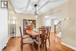 Welcome to this lovingly maintained 2-storey detached home, tucked away on a quiet cul-de-sac with no rear neighbours, where pride of ownership shines through years of thoughtful updates & meticulous care. Boasting 4+1 bedrooms, 4 bathrooms & parking for up to 5 vehicles. The main level features hardwood flooring (2017), a welcoming foyer with a closet & a 2-piece bathroom & a main floor laundry room with sink, cabinetry & direct garage access. Bright & spacious, the living room with custom California shutters is a versatile space for an office, extra seating for gatherings, or a cozy lounge area. The renovated kitchen (2019) is a standout with quartz countertops, stainless steel appliances, ceramic backsplash, under-cabinet lighting, soft-close drawers & cabinetry doors & a bright breakfast area with a walkout to the deck. Adjacent to the kitchen, the family room offers a cozy wood fireplace & a private dining area. Upstairs, four spacious bedrooms with updated carpeting (2021) & an updated stair railing (2021) include a primary suite with a walk-in closet & a private 4-piece ensuite, while bedrooms 2, 3 & 4 each have double closets & share a full 4-piece bathroom. The fully renovated basement (2021) with potential for an in-law suite has it all. With waterproofing (2020/2025) & 2 egress windows (2022), excellent flexibility with a rec room, fifth bedroom, kitchenette with eating area, 4-piece bathroom & ample storage. The fully fenced, updated backyard with a newer patio (2021) backs onto the Don Doan trail. Ample parking is available with a triple-wide driveway & a double car garage. Additional exterior upgrades include a sealed driveway (2025), upgraded insulated garage/front door, newer soffits, eavestroughs (2020), windows & roof. Walking distance to trails & local favourites like the Santa Claus Parade & Canada Day, this home is also close to parks, a wellness centre, public transit, schools, shopping, the hospital, Hwy 410, library, places of worship & more. (id:7525)