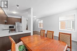 Welcome to this stunning end-unit 3-bedroom, 4-bathroom condo-townhouse, offering one of the best locations in the complex! This bright and spacious home features a fully finished walkout basement that backs onto a serene ravine, offering peaceful views and added privacy. From the moment you step inside, you'll be impressed by the thoughtful layout, natural light, and quality finishes throughout.The main floor showcases an open-concept living and dining area with elegant hardwood flooring, perfect for relaxing or entertaining guests. A bay window adds charm and floods the space with light. The modern kitchen is equipped with stainless steel appliances, ample counter and cabinet space, a stylish backsplash, and a convenient breakfast bar. A second bay window in the kitchen overlooks the private ravine and opens to a deck perfect for morning coffee or evening BBQs.Upstairs, the large primary bedroom features a walk-in closet, its own bay window, and a 4-piece en-suite bath for your comfort. Two additional generously sized bedrooms and a full bathroom complete the upper level.The professionally finished basement, completed by the builder, offers a walkout to a private patio surrounded by nature ideal for a home office, recreation room, or media space. Theres also a 2-piece bathroom and abundant storage space.Enjoy the convenience of a single-car garage with direct interior access, a private driveway, and visitor parking nearby. Bay windows on all three levels enhance the character and brightness of this exceptional home. Don't miss this rare opportunity to own a beautifully maintained, move-in-ready home in a sought-after, family-friendly community. Book your private showing today! (id:27)