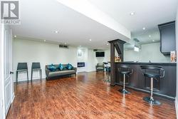 Stunning 4-bedroom detached home in a highly desirable Brampton neighbourhood! Features upgraded hardwood floors throughout, 9-ft ceilings, pot lights with dimmers, and a cozy family room with fireplace. Modern, recently upgraded kitchen with quartz countertops, custom cabinetry, large island with seating for eight, induction stove, upgraded SS appliances, and a beautiful butler's servery/pantry with mini-fridge. Walkout to a 2-stage deck with electric fence lighting. Upper level includes a spacious primary bedroom with 4-pc ensuite and W/I closet, plus 3 large bedrooms and an upgraded guest washroom with modern stand-up shower. Finished basement with a stylish bar-perfect for entertaining. Exterior upgrades include pot lights all around the home and an extended driveway with built-in lighting. Additional highlights: brand new 2-stage Carrier furnace with humidifier, brand new washer/dryer, Ecobee smart thermostat, and upgraded quartz counters in all bathrooms. Prime location close to Hwy 410/401/407, top-rated schools, parks, shopping, and community centre. (id:27)