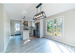 Charming 3 bedroom home w/income potential in desirable Brantford neighbourhood.Boasting laminate flooring throughout the bright and airy main floor, spaciousliving room w/large window & cozy fireplace, perfect for relaxing. Walk into theradiant dining room combined w/kitchen area, ideal for entertaining and casualdining! Kitchen features pot lights for ample lighting and a modern touch. Masterbedroom retreat with walk-out to balcony - enjoy your morning coffee or eveningsunsets. Two additional generous bedrooms w/plenty of natural light. Spaciousbasement with separate entrance - easily convert to inlaw suite or rental apartmentfor extra income! HVAC, roof & washer & dryer all 3 years new. Don't miss out -schedule your private viewing today!