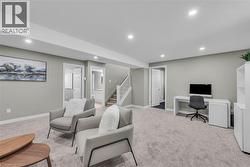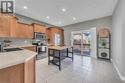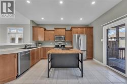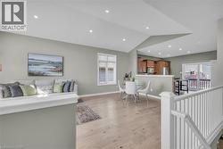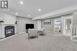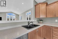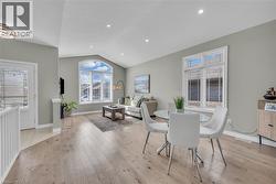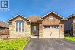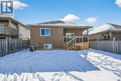 Immaculate bungalow on a quiet street in popular West Brant, built in 2011. This open-concept home features soaring ceilings and a bright, spacious eat-in kitchen overlooking the dining and living areas—perfect for everyday living and entertaining. The sunny living room showcases hardwood floors and large windows that flood the space with natural light. Sliding doors from the kitchen lead to a covered rear deck with natural gas BBQ hookup, overlooking a generous fully fenced yard—an ideal spot to relax and enjoy your day. Foundation trees planted along rear fence line. Two well-proportioned bedrooms and a spacious four-piece bath complete the main floor, offering comfortable, accessible living. The fully finished basement features large windows for added natural light, a spacious family room with gas fireplace and pot lights, two additional bedrooms (one currently used as an exercise room), a full bath, and a large utility room providing excellent storage. A fantastic layout for empty nesters with visiting guests or grandchildren, or for families needing extra space. Recent updates include stylish new windows installed July 2025. Located in a quiet, family-friendly neighbourhood close to shopping and parks—this is truly the perfect bungalow. (id:27)