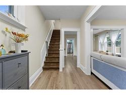 Gorgeous renovated home. Guests are greeted by a large enclosed front porch. Entering the home, the foyer is spacious. Main level offers good sized living room and dining room both with large windows. The kitchen is a real show stopper featuring new cabinetry and quartz countertops. The back entrance leads to a laundry/mudroom and a new 2 pc powder room. The second level offers a spa like bath and 3 generous sized bedrooms. A stairway leads to the third floor which was insulated during renovations as well as bring hydro, HVAC and internet up to this level for future development. This home has luxury vinyl flooring throughout making it carpet free top to bottom. The lot is oversized providing lots of room for a workshop or a large garage. Book your showing today! Seller had new asphalt shingles installed Oct. 3, 2025 and new furnace installed in October 2025.