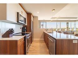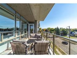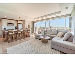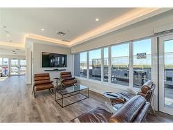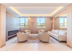 From the moment you arrive, you’ll feel like you’ve stepped into a boutique hotel – luxurious, stylish, and far from ordinary. Paying homage to the historic Brantford Flying Club, The Landing blends aviation-inspired design with modern elegance and top-tier craftsmanship.This premium southwest corner unit on the 4th floor offers 900 sq ft of refined indoor living with floor-to-ceiling windows for an abundance of natural light and sweeping views. Step outside to enjoy 200 sq ft of private outdoor space on a covered, south-facing wraparound balcony – ideal for entertaining or relaxing.Inside, the 2-bedroom, 2-bathroom layout features 9’ ceilings and a bright, open-concept design. The upgraded “Sight Seer” Interior Design Package includes:Walnut veneer & white kitchen cabinetryPremium Silestone solid surface countertops with matching backsplashRich Luxury Vinyl Plank flooring throughoutShaker & slab-style cabinetry, designer lightingChrome kitchen & bath fixtures,modern hardwareHexagonal bathroom tiles, cloud white trims, upgraded vanitiesEnsuite with tub & guest bathroom with walk-in glass showerPremium Appliance Package:Stainless steel fridge, convection range, microwave hood fan, dishwasher, and in-suite stacked washer & dryer2 PARKING SPOTS, and a large storage locker are included.Building amenities: Rooftop patio, private speakeasy, fitness studio, and library.Location! Location! Location!Located at 34 Norman Street, this north-end gem provides immediate access to Highway 403 and King George Road, putting you minutes from top-tier restaurants, retail, schools, and all of Brantford’s best amenities.This is not just a condo – it’s a lifestyle upgrade. Don’t miss your chance to own one of the most desirable and well-appointed units in Brantford’s most exciting and thoughtfully designed new development.This isn’t just a condo — it’s a lifestyle upgrade.