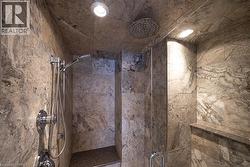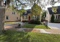 Welcome home to 48 Lincoln Avenue, a truly one-of-a-kind century home set on a tree-lined boulevard in Brantford’s coveted Holmedale neighbourhood. The exterior presents tidy curb appeal highlighted by classic shutter detailing, an arched top front door & stamped concrete driveway & walkways. Offering 2,781 sq ft of living space, this exceptional residence features 4 bedrooms & 4 full bathrooms, seamlessly blending historic character with high-end modern renovation. Hardwood & tile flooring span the main & upper levels, accented by deep baseboards & wide trim. At the heart of the home is an expansive great room with heated tile flooring & recessed lighting The living area flows into the showpiece kitchen finished with custom maple cabinetry, valance lighting granite counters & beveled edge subway tile backsplash. Premium Thermador stainless steel appliances include a 6 burner gas range with commercial-grade exhaust, 2 sinks, walk-in pantry and generous centre island. A side door with custom built-in storage provides a functional mudroom-style space, while a triple garden door offers seamless to the backyard for outdoor living. The main floor is completed by a spacious bedroom & separate office or options 5th bedroom, featuring 3 piece ensuite with clawfoot tub. The second floor offers 3 additional bedrooms, 4 piece bathroom & an exceptional primary suite. The primary retreat boasts dual walk-in closets and 5 piece ensuite with heated floors. The lower level adds another 480 sq ft of finished living space with a rec room and 3 piece bathroom. Outside the fully fenced yard is thoughtfully designed for enjoyment & low maintenance living. Features include a raised deck with modern glass panel railings, stamped concrete, lighting, retractable awning, natural gas BBQ hookup, in-ground sprinklers & garden shed with hydro. Ideally located in Brantford’s Holmedale neighbourhood, this home is close to parks, schools & walking trails with convenient access to the Grand River. (id:27)