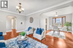 Welcome to 52 Charing Cross, a beautifully updated bungalow tucked into Brantford’s highly sought-after north end. This charming home greets you with classic archways that seamlessly connect each room, creating a warm and inviting flow throughout. The spacious living room features rich hardwood floors and a stunning brick-surround gas fireplace, offering the perfect place to unwind. It opens effortlessly into the dining room —an ideal space for family meals and gatherings. The updated kitchen is equally impressive, boasting a gas stove, stainless steel appliances, flat-panel cabinetry, and a sleek tile backsplash, along with direct access to the backyard deck for easy indoor-outdoor living. The main level also includes a comfortable primary bedroom with sliding doors to a screened-in porch, perfect for morning coffee or evening relaxation. An additional bedroom and a beautifully updated 3-piece bathroom with a modern vanity complete this floor. Downstairs, you’ll find a large recreation room perfect for movie nights or game days, an additional bedroom ideal for guests or a home office, a convenient 3-piece bathroom, and plenty of storage space. Interior features include California shutters throughout most rooms, a water softener, security alarm system, and an automatic garage door opener. Step outside to enjoy a fully fenced backyard highlighted by a beautiful deck with pergola, evergreen trees, landscaped gardens, and a handy storage shed. Exterior features also include a detached heated double garage, exterior security lighting, off-street parking, and the potential for a residential/business opportunity. Located within walking distance to restaurants, a doctor’s office, schools, and all the amenities the north end of Brantford has to offer, this home delivers comfort, convenience, and exceptional lifestyle. Book your showing today, this property won't last long! (id:27)