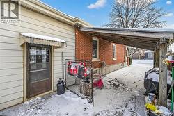 Step into the perfect blend of classic charm and modern updates at 55 Brunswick St. This meticulously maintained all-brick bungalow is nestled on a quiet, tree-lined street in a sought-after, family-friendly neighborhood just steps from local nature trails. The sun-drenched main floor boasts a functional layout featuring gleaming hardwood floors through the formal living and dining rooms. Culinary enthusiasts will love the bright eat-in kitchen, fully renovated in 2024 with stylish cabinetry and stainless steel appliances. The primary suite offers an impressive triple-closet storage solution, accompanied by a spacious second bedroom and a tastefully updated 4-piece bath. The finished lower level significantly expands your living space, featuring a massive recreation room anchored by a cozy gas fireplace—perfect for movie nights. A private home office/den and a polished, finished laundry room complete the interior. Outdoor living is a breeze with a charming covered front porch, a convenient carport, and an expansive, fully fenced backyard featuring a large patio ideal for summer entertaining. With a new furnace (2022) and turn-key finishes, this home is ready for you to move in and enjoy. (id:27)
