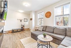 Perfect Starter Home for First-Time Buyers! Welcome to your ideal first home—charming, stylish, and move-in ready! This inviting property features a cozy covered front porch where you can start your mornings with a cup of coffee. Step inside to a bright, open-concept living room with modern luxury vinyl plank flooring, a statement feature wall, and a sleek electric fireplace—perfect for relaxing or hosting friends. The updated kitchen offers plenty of cabinetry, new countertops, and seamless flow into the elegant dining room, where patio doors lead to your private deck and fully fenced backyard—great for summer BBQs, pets, or simply unwinding outdoors. Enjoy the convenience of main floor laundry and plenty of natural light throughout. Upstairs you'll find two oversized bedrooms filled with character, including charming wainscotting and tall 11 baseboards. The updated 4-piece bathroom features a tiled shower and a clean, modern feel. The basement includes a dedicated workshop with a large workbench and plenty of storage—ideal for hobbies or future expansion. You’ll enjoy hosting summer barbecues and gatherings with your family and friends in the private backyard space. Recent updates include a new metal roof in 2021, new central air unit in 2024, newly renovated bathroom in 2025, new carpeting upstairs in 2022, new luxury vinyl plank flooring on the main level in 2022, updated vinyl windows, and more. This home has all the features first-time buyers are looking for: charm, modern touches, a functional layout, a private outdoor space, and major updates already done for you. It’s just waiting for you to move in and start living! Book a private viewing today! (id:27)