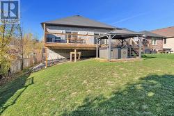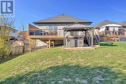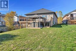 Built in 2019, this all-brick 4 bed, 3 bath home offers a perfect blend of newer home comforts and low-maintenance living. Set in the ideally located and sought after Tackaberry Ridge subdivision, it's the ideal home for families or those looking to retire beautifully in a welcoming, lock it-and-go neighbourhood. Step inside to a bright and airy main floor with 9' ceilings and an open-concept layout designed for easy living and entertaining. The inviting living room features a cozy gas fireplace and bright patio door that fills the space with natural light. The custom kitchen impresses with stainless steel appliances, hard-surface countertops, a seated island, and a deep walk-in pantry, while the adjacent dining area makes family entertaining easy. The spacious primary suite is a private retreat, complete with a beautifully featured ensuite with built-in cabinetry, a glass-and-tile shower, and a large walk-in closet. A patio door leads directly to a deck and private hot tub area, your own personal escape. A second main-floor bedroom is perfect for a nursery, office, or den, while a 4-piece bath and convenient laundry room with garage access add to the thoughtful layout. The lower level offers bright and inviting additional living space and is perfectly laid out for kids. Two bright bedrooms with on-grade windows share a pass-through walk-in closet, and a great full bath with double sinks and plenty of storage, making busy mornings a breeze. Outside, the covered front porch overlooks peaceful green space, while the generous backyard features a large elevated deck, gas BBQ hookup, pergola, and hot tub area for year-round enjoyment. The deep single garage and double-wide driveway add great utility. Located steps from parks, schools, and the recreation centre, this move-in-ready home blends comfort, quality, location and community in one perfect package. (id:7525)