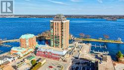 The stunning panoramic views from all windows in this tastefully appointed condo allow a pleasing outlook of the 1000 Islands and parkland to the west and cityscapes and the many church spires to the north. The current owner replaced all flooring and redecorated throughout when purchased from the original owner. Enjoy tasteful luxury vinyl plank throughout and cushion tile flooring in the baths. This "designer look" condo is freshly painted throughout in neutral colours. You will never tire of summer days and evenings on your private 105 sq ft balcony watching ocean going ships, lakers, private yachts and endless riverfront activity. Meet fellow residents or friends at the in building restaurant or cafe. Enjoy a game of pool in the party room, keep fit exercising in the work out room or swimming in the heated indoor pool. An extensive waterfront deck expands across the perimeter of the building providing multiple sitting areas, outdoor shuffle board, wonderful for socializing. When you live at the "Tall Ships" you are not just buying a beautiful, contemporary home but also a great, carefree lifestyle. Book your showing soon. Seller can accommodate a quick closing. (id:7525)
