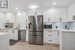 Are you looking for an updated home, with a large backyard that backs onto greenspace, in a quiet, picturesque, family friendly neighbourhood? Look no further. Welcome to 637 Lomond Crescent, a beautifully updated semi-detached home, backing onto Centennial Path/greenspace, and located on a quiet crescent in the desirable south Burlington, Longmoor neighbourhood. This beautiful home has a bright and spacious floor plan, a gorgeous updated modern kitchen with quartz counters and backsplash, stainless steel appliances, and potlights, a lovely separate dining room and a very generous sized living room with pot lights. New flooring throughout, as well as stairs, and smooth ceilings on the main floor update and modernize the home. The spacious lower level Rec room is the perfect space to chill and watch a movie, play games and hang out, with a great workspace tucked in as well. A versatile extra room is currently set up as a gym, but would also make a great office or potentially another bathroom. There is no lack of storage with an amazing and massive crawl space. The large sun filled rear yard has lots of room for all your outdoor needs, plus a large shed, and has an access gate to the path/greenspace behind. Some recent updates include roof, eavestroughs, soffits, fascia, premium composite siding, windows, kitchen, flooring/stairs, pot lights, smooth ceilings, electrical... An exceptional location on a quiet crescent, close to parks, trails, schools, library, community centre, transit, highways, shopping, restaurants and all amenities. This is a great opportunity to own a move-in ready home in a prime location. (id:27)