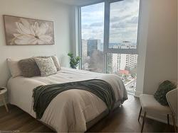 Wake up to breathtaking lake views and end your day with stunning sunset views in this brand-new, never-lived-in condo located in the heart of downtown Burlington. Floor-to-ceiling windows flood the space with natural light while showcasing panoramic views of Lake Ontario and the surrounding waterfront.This thoughtfully designed 1 bedroom + den (could be a second bedroom or home office) features 2 full bathrooms and a sleek, open-concept kitchen and living area with a great floor plan perfect for both everyday living and entertaining.Step onto your private balcony and enjoy an unbeatable lifestyle—walk to the lake, waterfront trails, pubs, and top-rated restaurants, all just minutes from your door. Downtown convenience meets lakeside tranquility.Residents enjoy premium amenities including a fully equipped gym and yoga studio, stylish party room, and a pet washing station—because luxury living should include every member of the household.A rare opportunity to live in a never-occupied condo with spectacular views in one of Burlington’s most sought-after locations. Simply move in and enjoy the view.