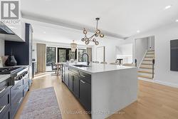 This stunning two-storey home is the definition of modern luxury. Extensively renovated over the past four years, it sits on a rare half-acre lot, offering a peaceful, country-like feel right in the heart of Burlington. Inside, you'll find 4 bedrooms, 3.5 bathrooms, with 4,323 sq. ft. of living space. Engineered hardwood throughout, solid panel interior doors, pot lighting, and premium finishes in every room. Oversized windows and thoughtful design allow natural light to flood the home throughout the day. A spacious formal dining room sits just off the chef's kitchen, which showcases high-end Thermador appliances, Venetian porcelain countertops on island, backsplash, and custom range hood. A completely hidden butler's area includes a second oven, build-in microwave, additional sink, and a walk-in pantry, perfect for seamless entertaining. Custom sliding doors off the living room open to a large deck and a beautifully private, fully fenced-in backyard, ideal for hosting or future pool plans. The main floor also offers a dedicated office, perfect for working from home. A separate hallway off the living room leads to two additional bedrooms that share a spacious Jack & Jill bathroom. Upstairs, the private primary wing includes a large bedroom, spa-inspired ensuite with heated floors, a walk-in closet with washer and dryer, and a private balcony with city views overlooking the backyard. All full bathrooms feature heated floors. A self-contained in-law suite offers its own entrance, full kitchen, living room with coffered ceilings, large bedroom with ensuite, in-suite laundry, and a private deck, ideal for multigenerational living or guests. The finished basement adds flexible space for a playroom, gym, media lounge, or sauna. An attached 1-car garage with inside entry completes this exceptional home. Luxury, space, and sophistication, this home truly has it all. (id:27)