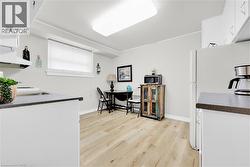 DRASTICALLY REDUCED TO SELL and CHEAPER THAN RENT!!! Welcome to this nicely updated, move-in ready, 1 bedroom unit with quality vinyl windows in every room, in an unbeatable and extremely desirable location, directly across from Spencer Smith Park, Spencer's at the Waterfront, and the Art Gallery of Burlington, and literally steps to the lake, trails, hospital, and downtown Burlington, and only a minute to the QEW, 403 and 407. This unit is on the first floor, has spacious principal rooms, including the living room, large eat-in kitchen, and primary bedroom, and has lots of quality updates throughout. Updates include ALL NEW in 2024: luxury wide plank vinyl flooring and 4 baseboards throughout, updated 4-piece bathroom with new vanity, countertop/sink, sink faucet, mirror, light fixtures, showerhead, and toilet, refreshed white kitchen cabinetry professionally painted inside and out, new fridge and stove, portable AC unit, and lighting, and freshly painted throughout. This unit shows 10+++. The complex has a nice community feel, is very quiet, well maintained, and has a great condo board. Complex amenities also include visitor parking, onsite laundry, and bike storage. The low monthly fee includes PROPERTY TAX, water, cable tv, unlimited high-speed internet, and storage locker. Optional parking space is $625/year. 2nd space may be available if needed. No dogs and no rentals/leasing. Don't wait and miss this opportunity for affordable living, in this very nicely updated unit, directly across from the lake and just about every other amenity! Welcome Home! All furniture negotiable and less than 2 years old. Quick closing available! (id:27)