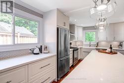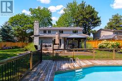 Set in one of Burlington's most desirable communities...among rolling hills, mature trees, and a golf course setting, this beautifully upgraded 4+1 bedroom, 2.5 bath home offers a true retreat right in the city. The home offers a double car garage, a wide premium pie-shaped lot and it all backs directly onto a ravine-providing rare privacy and a serene, "cottage-like" setting. The lot provides more than 100ft of treed beauty stretching across the back, it's a backyard you'll never want to leave. Inside you'll find the fully renovated main floor with spacious dining room, and the show-stopping kitchen featuring quartz countertops, a 10-foot island, gas stove, farmhouse sink, and endless storage. The kitchen flows seamlessly into a warm and inviting living room with agas fireplace, plus a walkout to the backyard. Step outside to find a two-tier deck, landscaped gardens, a generous green space, and a sparkling pool-all framed by mature trees. The main floor includes a convenient laundry and mudroom. Upstairs you'll find 4 generous bedrooms, 2full bathrooms, including a stylish primary ensuite bath. The newly finished basement adds even more space with a 5th bedroom, large rec room, and ample storage. All of this is set in a neighbourhood known for its natural beauty, quick highway and shopping access. It has close proximity to hiking, and biking trails, and Tyandaga Golf Course. If you've been searching for the perfect family home...your wait is over! (id:7525)