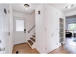 NEW PRICE! Welcome to this wonderful detached family home, offering a comfortable layout, practical features, thoughtful modern updates with an IN-LAW SUITE! The main level includes an updated kitchen with plenty of cabinetry and counter space-great for everyday cooking or hosting guests. Upstairs, you'll find three spacious bedrooms, including a large primary suite with ensuite privileges, designed to support easy family living.The finished lower level is a standout, offering flexible space complete with a second full kitchen, a 3-piece bathroom, and a cozy electric fireplace framed by a striking stone feature wall. With a walkout to the private backyard, this level is ideal for extended family, in-laws, or guests.Outside, enjoy a rare triple-car driveway, a generous side yard, and a private patio perfect for outdoor dining and summer gatherings. The attached garage with inside entry adds everyday convenience.Set in a highly desirable, family-friendly neighbourhood, this home is just a short walk to Brant Hills Elementary School and close to parks, shopping, and community amenities. A great opportunity in an ideal location!