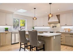 Stunning Brand-New Rebuild in Downtown BurlingtonTucked away on a quiet cul-de-sac, this raised bungalow offers refined living at its best. Perfectly situated backing onto the picturesque Waterfront Trail, it’s just a short stroll to downtown Burlington, with its charming shops, restaurants, and the sparkling shores of Lake Ontario.Never been lived in, this home is ideal for downsizers or professionals seeking a luxurious, low-maintenance lifestyle where style and comfort abound.Step inside to discover a magnificent open-concept design, featuring engineered hardwood floors, pot lights, and integrated speakers throughout. The great room captivates with its cathedral, beam-accented ceiling, skylights, and a stone-framed gas fireplace flanked by illuminated custom shelving and cabinetry. Sliding doors create a seamless transition to the covered porch, wired for sound and complete with glass railings overlooking a private backyard oasis.The professionally designed kitchen is a showpiece—featuring Bosch appliances, sleek finishes, and a large island perfect for entertaining. Just off the great room, the main floor laundry is bright and functional, with ample cabinetry, heated floors, and direct access to the garage and backyard.The primary suite offers a serene retreat with a vaulted ceiling, numerous custom built-ins, and a spa-like ensuite boasting a soaker tub and heated floors. The lower level is equally impressive, with a spacious, light-filled family room featuring a walkout to the garden and custom built-ins for extra storage. Three generous bedrooms, each large enough for a king bed, share a beautiful 3-piece bath again with heated floors. Even the mechanical room has been finished with large-format tile for a polished touch.Outside, a detached garage comes EV charger–ready, completing this exceptional offering.Every detail has been thoughtfully designed and flawlessly executed. This one-of-a-kind property is truly not to be missed!