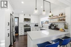 Welcome to this beautifully updated three-bedroom, two-bathroom bungalow located in sought-after South Burlington. The home features a renovated kitchen with modern finishes, updated interiors throughout and a practical layout ideal for both everyday living and entertaining. The fully finished basement offers additional living space and includes a kitchenette/wet bar, perfect for hosting guests or creating a cozy retreat. Outside, enjoy a large private, professionally landscaped backyard matching the curb appeal of the front yard. Situated in a quiet, mature neighbourhood just five minutes from downtown, this home combines comfort, privacy and unbeatable convenience. Don’t be TOO LATE*! *REG TM. RSA. (id:27)