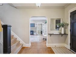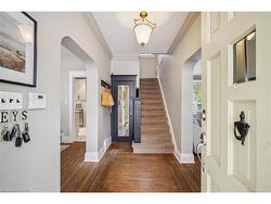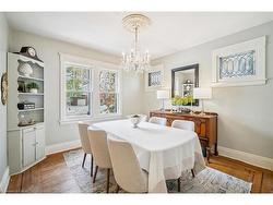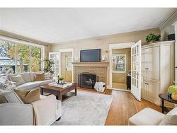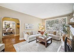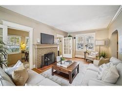 Full of character & charm, this home sits on a picturesque, tree-lined street in coveted Roseland - just steps to the Lake, Downtown Burlington & Roseland Tennis Club. Set on a 62'X120' lot within top-rated school districts, it offers timeless appeal & a highly desirable location. Leaded glass windows, crown mouldings, hardwood floors & a wood-burning fireplace bring warmth & classic elegance throughout. The bright living room is filled with natural light from a large picture window, complemented by a separate dining room & an upgraded kitchen with modern finishes. A sunroom wrapped in windows with walkout access to the backyard provides an ideal home office or cozy retreat. The primary bedroom provides a peaceful escape, joined by two additional well-sized bedrooms. The finished basement with a separate entrance adds versatile living space & a renovated full bathroom. Outside, a private backyard with a stone patio, mature trees & lush gardens creates a serene setting for entertaining. A rare opportunity to own a home with true character in one of Burlington's most sought-after neighbourhoods.