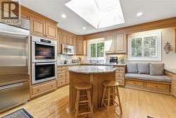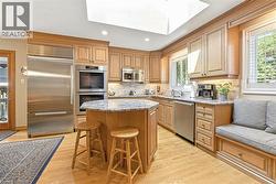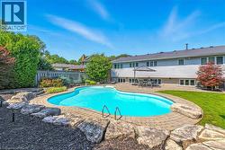 Desirable Shoreacres Family Home Welcome to this immaculately maintained 3-level backsplit in the highly sought-after Shoreacres community, just steps from scenic Glen Afton Park. From the moment you arrive, you’ll be impressed by the beautiful curb appeal and natural stone front that highlight the pride of ownership throughout. Inside, the spacious layout is designed with family living in mind. •Second floor: Features 4 generously sized bedrooms, including a Primary suite with custom built-in cabinetry. Two full bathrooms boast heated floors, high-end fixtures, and a luxurious ensuite with steam shower. •Main floor: A bright and inviting eat-in kitchen with island, an abundance of solid maple cabinetry, granite countertops, and premium Sub-Zero and Miele appliances. The adjoining living room is perfect for entertaining or relaxing. •Lower level: A welcoming family room with a gas fireplace, expansive windows that flood the space with natural light, a private home office, and a convenient powder room. Both the kitchen and lower level walk out to the professionally landscaped backyard, an outdoor oasis featuring a large inground pool and irrigation system—ideal for summer entertaining and family fun. Located in the coveted Tuck/Nelson school district, this home truly has it all: luxury finishes, exceptional care, and a family-friendly neighbourhood. Don’t miss the opportunity to call this Shoreacres gem your home! (id:7525)