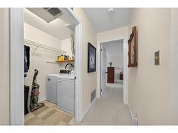 Welcome to this beautifully maintained second-storey, one-level living, town home featuring 2 spacious bedrooms plus 2 full bathrooms. Primary bedroom with walk-in closet and a 4 piece ensuite (tub/shower combo). Second bedroom w/3 piece ensuite (walk-in shower). Numerous windows throughout flood this open concept living area in a cheerful, natural, warm atmosphere. Spacious living room/dining room. Lovely kitchen offers a breakfast bar, pantry, as well as generous extra storage! South facing private balcony (gardener’s delight) is conveniently accessible from dining room plus primary bedroom - extending your living space! Also, enjoy your own personal in suite laundry/utility room! Exclusive-use garage, with an additional parking space and private storage room. Near all amenities! Walk to: waterfront, parks, hospital, Mapleview mall, public transit, schools etc. Easy access to the QEW (Toronto & Niagara bound), 403 and 407. Proudly owned home, meticulously maintained by the same PET FREE & SMOKE FREE owner for over 27 years. This is a special home ready for you! Possession date flexible.