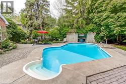 Welcome to this sprawling executive 4 level home in the coveted Roseland community. Just steps away from vibrant downtown Burlington, the lake and within sought after school catchment. From the moment you arrive, you will be impressed with the lovely curb appeal this home offers on a premium 80 foot wide lot, double car garage and parking of up to 5 cars. Once inside the spacious foyer, you’ll step up to a large welcoming living room perfect for entertaining and enjoying the warmth of the wood burning fireplace. The kitchen featuring stainless steels appliances and stone countertops flow effortlessly to the main floor office, dining room and grand family room with vaulted ceilings, skylights and wood burning fireplace. Convenient main floor primary bedroom suite features an atrium ceiling, a 5 piece ensuite, walk-in closet, gas fireplace & walkout to private, park-like grounds with heated in-ground pool. Second storey offers four spacious bedrooms, one featuring a 5pc ensuite and an additional 4pc bathroom. Lower level recreation room has a wood-burning fireplace, wet bar & built-in bar fridge. Relax in style within the massive backyard and perfect sanctuary for gatherings & extending outdoor enjoyment with the heated in-ground pool and serene views of the mature landscaping and perennial gardens. Enjoy the convenience of being within walking distance to downtown Burlington with its array of shops, restaurants, the arts center, Spencer Smith Park, and much more. Experience the vibrant lifestyle this community has to offer right at your doorstep. (id:27)