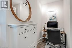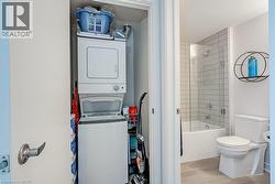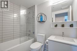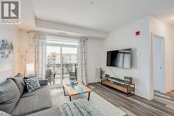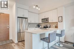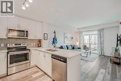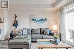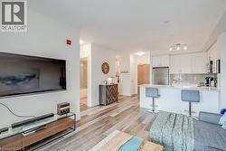Stunning one bedroom + den suite at Affinity in Aldershot! Custom kitchen with quartz, stainless steel appliances, breakfast bar and glass subway tile backsplash. Open concept living with 9' ceilings, in-suite laundry, 4-piece bathroom and spacious private balcony. Steps to the GO station, RBG, marina, library, schools and Burlington Golf & Country Club. One underground parking space and one storage locker on unit level. Building amenities include loads of visitor parking, electric car charging station, rooftop terrace with BBQs, gym, yoga room and party room! (id:27)