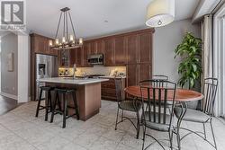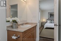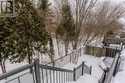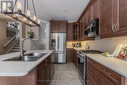 Welcome to this Mattamy-built Winterfield home, perfectly designed for families and set on a premium ravine lot offering privacy, space, and beautiful natural views. With 2,934sf of living space and upgrades throughout, this home blends function and lifestyle in a sought-after friendly neighbourhood. Just steps to schools, parks and everyday essentials, with easy access to the 407, GO Train, shopping and more-ideal for family life and commuters. Curb appeal welcomes you with stone steps leading to a warm, inviting entryway. Inside, hardwood flooring flows throughout the home. The spacious kitchen is the heart of the home, featuring ample custom cabinetry, stainless steel appliances, a large island with breakfast bar, and a sunny eating area with walkout to the back deck through an extra-wide glass door-perfect for family meals and entertaining. The open-concept living and dining area offers a beautiful bay window and tray ceiling, creating an airy, welcoming space for everyday living. The upper level is thoughtfully designed, featuring a stunning middle-level family room with vaulted ceiling, cozy stone-surround fireplace, and built-in shelving-perfect for movie nights and relaxing together. A dedicated home office area provides ideal work-from-home flexibility. The spacious primary retreat includes a 4-piece ensuite with soaker tub and walk-in shower, while three additional generously sized bedrooms and a 4-piece main bath provide plenty of room for a growing family. The finished lower level offers incredible versatility with laminate flooring, a separate garage entry, large rec room, stylish wet bar with beverage fridge, and an additional bedroom with its own 3-piece ensuite-ideal for guests, teens, or multi-generational living. Step outside to a fully fenced backyard oasis featuring an elevated composite deck, patio, green space for kids and pets to play, and peaceful ravine views-your own private escape in the city. A perfect place to grow, gather,and call home (id:27)
