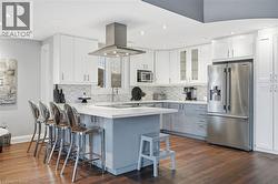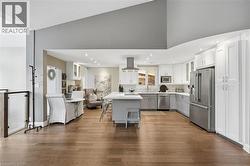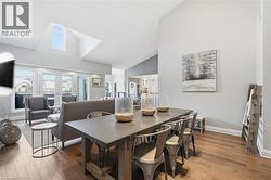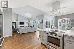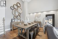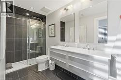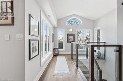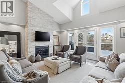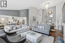 Step inside this exceptional executive townhome at The Terraces on New Street, where refined living meets everyday convenience in the heart of Burlington. A dramatic sun-filled great room with soaring 15.5-foot cathedral ceilings and a gas fireplace creates an impressive yet welcoming space to relax or entertain. Rich hardwood flooring flows throughout the entire home, adding warmth and elegance to every room.The open-concept layout leads into a chef-inspired kitchen with expansive quartz countertops and a generous peninsula—perfect for gathering, prepping, and hosting. From here, step out to your private east-facing terrace, ideal for morning coffee or alfresco evenings with friends.The main level offers two spacious bedrooms, each with its own full bathroom. The primary retreat features a walk-through closet, along with a spa-like five-piece ensuite complete with double sinks, a soaker tub, and a glass shower. The second bedroom enjoys ensuite privilege to a 4 pc bathroom. A main-floor laundry area adds everyday convenience. Downstairs, the fully finished lower level offers incredible flexibility—perfect for a home office, gym, guest suite, or media room. You’ll also find a 3-pc bathroom, an additional walk-in closet with built-ins, and multiple storage closets, providing exceptional storage throughout the home. All new windows were replaced in 2024, offering added comfort, energy efficiency, and peace of mind. Inside garage entry and ample storage add practicality to luxury living. Enjoy maintenance-free living just steps to downtown Burlington, the lake, top-rated schools, parks, and shopping. This is a rare opportunity for turnkey elegance in a truly unbeatable location. (id:27)