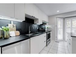 Welcome to this beautifully updated end-unit condo townhouse in one of Burlington's most desirable pockets - offering over 1,400 sq. ft. of finished living space with lake views including a fully finished lower level. Perfectly positioned for comfort and convenience, this home blends modern updates with an inviting layout ideal for entertaining and everyday living.The bright and airy main floor showcases a spacious living area with large windows and a walkout to your massive private terrace. With a hard gas line for BBQ and lake views, this outdoor space feels like an extension of your living area - perfect for morning coffee, summer gatherings, or a morning sunrise. The kitchen has been fully renovated, featuring sleek two-tone cabinetry, black stone countertops, stainless steel appliances, under-cabinet lighting, and a clean, modern design that ties seamlessly into the rest of the home. A stylish powder room completes the main level.Upstairs, discover two spacious bedrooms including a primary retreat with a walk-in closet and a full bathroom. The second bedroom offers generous space, natural light perfect for guests or a home office.The finished lower level adds valuable bonus living space with a cozy recreation room, laundry area, and direct access to the garage.This home's end-unit positioning provides extra privacy and natural light throughout. Located in a quiet, well-maintained complex surrounded by mature trees and featuring a community pool, just minutes from the lake, go train, parks, trails, top-rated schools, shopping, and highway access - this is Burlington living at its best. Whether you're a first-time buyer, down-sizer, or young professional, this stylish and spacious home offers the perfect balance of comfort, convenience, and lifestyle.
