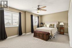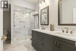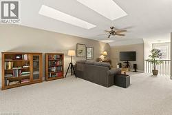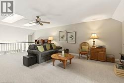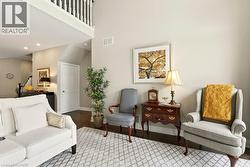 Absolutely stunning executive bungaloft in sought-after complex backing on to the 10th fairway of Millcroft Golf Club! 2,281 sq.ft. of beautifully updated open concept living space filled with natural light. Updated eat-in kitchen with stainless steel appliances (including gas stove and wine fridge), island, quartz countertops and glass subway tile backsplash. Spacious living/dining with vaulted ceiling, gas fireplace and walkout to private deck and patio with gas BBQ hookup and stunning golf course setting. Main level primary bedroom with a gorgeous spa-inspired 4-piece ensuite and walk-in closet. Upper level features a large loft/family room and a second bedroom with access to a 4-piece bathroom. Additional features and high-end finishes include 9' ceilings on the main level, hardwood floors, California shutters, pot lighting, skylights and an updated furnace (2024)! Double drive and double garage with inside entry to main level laundry/mudroom. 2 bedrooms and 2.5 bathrooms. (id:27)