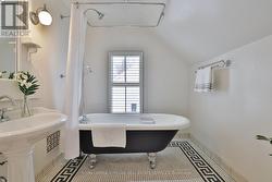 Welcome to a truly historic 1890 character home, set on one of downtown Burlington's most admired streets. Part of an iconic group of 4 cottages inspired by the famed "Painted Ladies," this residence offers a rare opportunity to own a piece of history, protected from future redevelopment, yet flexible for modern living. Directly across from Brock Park, and just steps to the lake, downtown shops, cafés, and cultural attractions, the lifestyle here is unmatched. Spend mornings and evenings alike in the enclosed front porch, perfect for people-watching and soaking in the neighbourhood. Inside, timeless character meets thoughtful upgrades. Original baseboards and mouldings, antique pine flooring, and 9-foot ceilings create warmth and authenticity, while modern comforts include central air, updated 100-amp electrical service, and a beautiful custom kitchen with heated ceramic floors, new cabinetry, stainless steel appliances, and a seating area overlooking the side yard. The living room features a gas fireplace, and a flexible main-floor room offers the ideal setup for a dining area or work-from-home office. A mud room with stylish glass block accents adds even more appeal. Upstairs, the primary bedroom is a retreat of its own with a fireplace, alongside a luxurious bathroom showcasing Victorian-style fixtures, heated floors w/ custom inlays, plus an additional bedroom perfect for family or guests. Out back, enjoy a private, landscaped outdoor oasis with a large deck, BBQ gas line, spacious partially fenced yard, and custom utility shed-delivering a cottage-like feel just steps from the lake. The location shines year-round: daily walks along the waterfront, winter skating nearby, and festivals right down the street-complete with two prime parking spots for hosting. A rare blend of heritage, lifestyle, and modern comfort-ideal for growing families, professionals working from home, or anyone drawn to distinctive character living in the heart of downtown Burlington. (id:27)