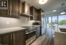 This brand-new 1 Bedroom + Den Brilliance Model suite at Illumina Condos offers 850 sq. ft. of bright, modern living with floor-to-ceiling windows that fill the space with natural light. The open-concept layout includes a designer kitchen with premium Fisher & Paykel appliances, a quartz waterfall island, and ample cabinetry and counter space, while the versatile den can serve as a home office or dining area. The spacious primary bedroom features a custom built-in closet and convenient access to a 4-piece bathroom. Residents enjoy underground parking and a private locker, as well as premium building amenities including a 24-hour concierge and security, a state-of-the-art fitness centre, bike storage, a BBQ area, and a stylish party room. The 22nd-floor party room with rooftop terrace offers breathtaking lake views and provides an ideal space for entertaining or relaxing. Steps from the lake, shops, cafés, restaurants, the Art Gallery of Burlington, and the Performing Arts Centre, with a pharmacy and medical clinic at the building base and close proximity to the GO Station and highways, this suite combines comfort, convenience, and modern urban living in one complete package. (id:27)