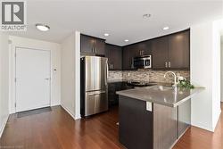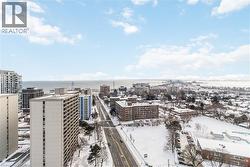 Prime location! This bright and spacious 2 bedroom corner unit has views of the lake and is just steps from downtown Burlington. Floor-to-ceiling windows flood the space with natural light, creating an airy and welcoming atmosphere throughout. The open-concept living and dining area is perfect for everyday living and entertaining, while the thoughtfully designed layout offers two generous bedrooms and a 4-piece bathroom. Step outside to a sun-filled balcony which is the perfect spot to enjoy your morning coffee and take in the lake views. This unit also comes with underground parking for added convenience. Residents have access to an impressive collection of luxury amenities, including a serene rooftop zen garden overlooking the lake, indoor pool, sauna, fitness center, BBQ area, party room, billiards room, library, yoga studio, EV charging stations, and ample visitor parking. Located just steps from downtown Burlington, you’ll have restaurants, boutiques, and the waterfront right at your doorstep. An ideal opportunity for those craving a vibrant, walkable lifestyle. (id:27)