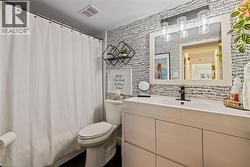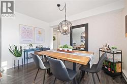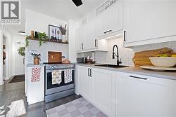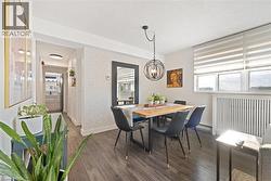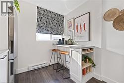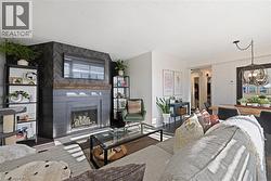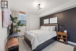 Welcome to The Empress, a well-managed condominium with 24 hour concierge, steps from Burlington Centre, Farm Boy, Denningers, public transit, parks, and quick highway access. This beautifully renovated 1+Den, 1.5 bath suite offers outstanding value and exceptional livability. The unit features newer flooring throughout, upgraded lighting, and a luxurious main bathroom. The sleek, renovated kitchen includes a custom built-in pantry, modern finishes, island and thoughtful storage solutions that maximize every inch. The spacious living room offers a comfortable layout with a walkout to the private balcony, while the separate den is ideal for an office or quiet reading space. The dining area easily accommodates a full-sized dining table, making entertaining effortless. The primary bedroom includes a rare walk-in closet and convenient two-piece ensuite. Additional features include a full laundry room, PAX wardrobe system in the front hall closet, and custom built-in storage throughout the suite creating a highly functional and organized home. The Empress provides excellent amenities, including a renovated party room & gym, outdoor pool, and underground parking. Beautifully updated, move-in ready, and located in one of Burlington’s most convenient neighbourhoods—this condo is a must-see. (id:27)
