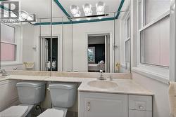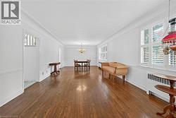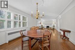 Beautifully maintained & cared for, this home sits on a double-wide lot surrounded by 32 species of trees. Same family for over 50 years. Eat-in kitchen has movable island & solid cherry custom cabinetry; opens to a heated, sunlight solarium. Combined living/dining room features hardwood floors, gas fireplace, views of private ravine. Main floor bedroom/office w/ a 2-pc ensuite w/ heated floor. Upstairs: 3 bedrooms, large central landing, built-in bookcases, 4-pc bathroom & walk-in hall closet. Basement could be a self-contained unit w/ exterior access to the yard. Currently this space has large laundry room, 3-pc washroom w/ heated floor, a den w/ fireplace, office, 2 studio spaces. 4-vehicle driveway w/ double car garage divided to include a hobbyist’s workshop. The privacy of this lot is one to admire; interlocking patio area, walking path & stairs to the lower yard & ravine. This property is one of a kind & must be seen to be truly appreciated. Steps to the lake, LaSalle Marina, Burlington Golf & Country Club, schools. Quick access to GO station & hwy. (id:27)