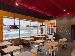 Mighty Bird Craveable Chicken is a popular quick service restaurant (QSR) franchise with a primelocation at a busy intersection in Burlington, surrounded by a variety of restaurants and strong foot traffic. This well-known brand benefits from an established reputation and loyal customer base, making it a turnkey opportunity for both new and experienced operators. The restaurant occupies a 1,489 Sq Ft space designed to maximize efficiency and help keep labour costs low, featuring seating for 30 customers and a takeout counter complete with TV screens.The layout is ideal for both dine-in and takeout operations, ensuring smooth service during peak hours. Great lease rate of $5,989 Gross Rent including TMI with 8 + 5 + 5 years remaining.Full support and training from head office, pending franchisor approval. Royalties are set at6% + 1%, and the kitchen is fully equipped with a 12-ft commercial hood and high-end appliances. Sales are very impressive, reflecting the strong performance of this location.Please do not go direct or speak to staff or ownership. There is an opportunity for rebranding into a different concept, cuisine, or franchise.