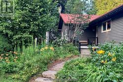 Located on a paved country road, this 3+2 bedroom, 3-bathroom raised bungalow set on a private, treed 2.89-acre lot features a pond, stream, bush, trails, fenced backyard, circular driveway, and a detached approx. 24 ft. x 30 ft. outbuilding with excellent workshop potential. An ideal property for nature lovers, hobbyists, and extended family living! The main level features an oak kitchen with stainless steel appliances, bright living spaces, and a south-facing deck overlooking the private backyard. The Living room offers hardwood flooring and a propane gas fireplace. Fabulous for extended family or in-law living, the finished basement with above-ground windows includes a spacious rec room with a gas woodstove, laundry area, hobby/workshop, 3-piece bath, bedrooms #4 & #5, and a cold room. The home has a steel roof, vinyl siding, and vinyl casement/awning windows, along with a ground-source heat pump and a fenced backyard. The attached, insulated approx. 23 x 23-foot garage is propane-heated w/ 11 ft. ceiling, a 16 x 10 ft. insulated roll-up steel door, and includes a vertical platform lift (elevator) for enhanced accessibility. An 8 ft. x 12 ft. greenhouse has water, hydro and propane heater. A fabulous opportunity combining privacy, functionality, and natural beauty in a tranquil setting close to major commuter highways 10, 9, and Airport Road. Minutes to all shopping amenities and hospital in nearby Orangeville, 20 mins to Brampton, 1hr to Toronto and 45 minutes to Pearson Airport. (id:27)