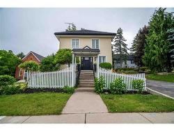Here is your opportunity to own one of Caledonia’s notable homes. Enjoy this lovely home is surrounded by gardens & shady green space. Until recently, it was also the location of The Proper Topper Bridal shop -undergoing a metamorphosis to become a lovely family home which can be used for a home-based business. The owners have thoughtfully transformed this home while respecting it’s past. Boasting large principal rooms, light-filled rooms embrace a modern esthetic with neutral colours & lovely restored floors and/or engineered wood floors ("carpet-free" home!). Main level boasts a chef style kitchen, updated bath & incredible living room anchored with a whitewashed brick fireplace & refinished hardwood. Main floor laundry with newer washer/dryer. (Laundry hook-ups also on second level.) Restored bonus room for office or playroom. 2nd floor can be accessed by one of two staircases & has 3 generous sized bedrooms & a loft plus renovated bath with clawfoot tub & fully tiled shower. The showstopper is a double sized master bedroom oasis with windows overseeing backyard with mature shade trees. A 3rd level is a unique family room or private office with beamed ceilings, skylight, wooden floors & windows affording a view towards the Grand River. Many improvements: upgrades to all bathrooms, most newer windows, dramatic entrance door with sidelights, new wide baseboards, subway tile backsplashes, new & restored flooring, new light fixtures & pot-lighting. Building upgrades: metal roof (2006), newer appliances, new sump pump & drainage system in basement, all owned furnace, water heater & AC (2021). Some windows (2010,2015);Siding, eaves, soffits (2010). You will appreciate that there are no "popcorn" ceilings here! Offering a place of calm in a busy world. Kick back on your cedar deck, walk to local grocery & restaurants. Stroll along the river walk or visit Jones Bakery. This home has it all!