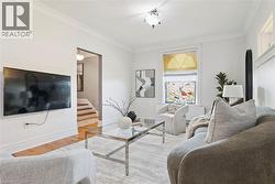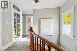 This beautifully maintained 2080 sq. ft. double-brick home, built circa 1900's, blends historic character with modern updates. Features include hardwood floors, crown mouldings, high ceilings, stained-glass windows, and the original staircase railings. The spacious kitchen offers new appliances and a walkout to the wrap-around deck. With 3 bedrooms and 1.5 bathrooms, a versatile loft with skylights, a gas fireplace, and approximately 500 sq. ft. of basement storage, this home is both functional and charming. 200 amp electrical service, plumbing, and roof shingles (approx. 6 years old) have all been updated. Enjoy a private backyard backing onto a wooded area and sunset views from the elevated front patio. Walking distance to downtown Hespeler, schools, parks, and trails, and only five minutes to Hwy 401. (id:27)