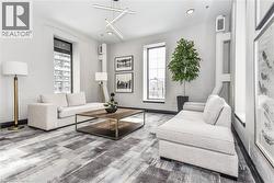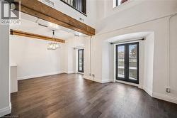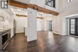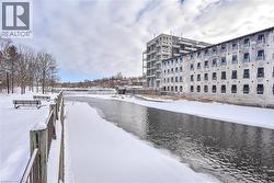 Set within the historic Riverbank Lofts, this exceptional two-bedroom, two-storey first-floor residence offers a rare blend of architectural heritage and contemporary sophistication in the heart of downtown Hespeler. Originally converted from an 1847 landmark, the loft celebrates its industrial roots with exposed wood beams, soaring ceilings, and expansive factory-style windows that flood the home with natural light and frame serene views of the Speed River. The main level features an airy open-concept layout designed for both entertaining and everyday comfort. Juliette balconies invite fresh air and add a subtle European touch, while the chef-inspired kitchen impresses with quartz countertops, premium appliances, and a cleverly concealed pantry tucked beneath the staircase. A stylish powder room completes the level. Upstairs, a dramatic catwalk creates separation between two private bedroom suites, each with its own beautifully finished ensuite bathroom, walk-in closet and sliding barn doors that pay homage to the building’s historic past. This boutique loft includes two dedicated parking spaces and access to an impressive suite of amenities, including multiple resident lounges, a fully equipped fitness centre located directly across the hall, bike storage, and a pet wash station. Steps from your door, downtown Hespeler Village offers cafés, independent shops, riverside trails, and so much more. A truly distinctive loft-style condo, this home delivers refined urban living with historic soul. (id:27)