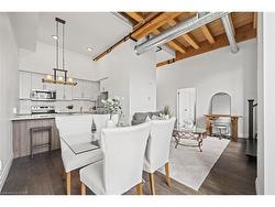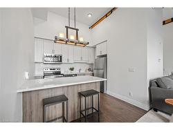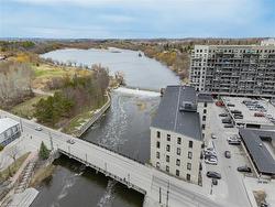 Experience the perfect blend of industrial charm and modern comfort at Riverbank Lofts! This stunning one-bedroom, one-bathroom condo is set in a beautifully repurposed former American Standard factory, transformed into contemporary residences in 2020. Nestled alongside the scenic Speed River and just steps from downtown Hespeler, you’ll enjoy easy access to local shops, trails, and vibrant community amenities. Step inside to soaring 12-foot ceilings, expansive windows that flood the space with natural light, and striking exposed stone walls and reclaimed wood beams that add unique character throughout. The stylish kitchen features quartz countertops, stainless steel appliances, and a spacious island—perfect for entertaining or casual dining. Open the patio doors to your own private balcony with captivating views of downtown. The bedroom offers a generous walk-in closet, providing ample storage. Additional conveniences include in-suite laundry, one dedicated parking space, and access to premium building amenities: a fitness centre, bike storage room, dog washing station, and a private lounge for hosting guests. With quick access to Highway 401, shopping, and public transit, Riverbank Lofts offers an unparalleled lifestyle in a truly distinctive setting. Don’t miss your chance to own a piece of Hespeler’s history—book your private showing today!