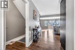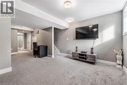 STYLISHLY UPGRADED TOWNHOME. 34 Nieson Street, Cambridge an elegantly upgraded freehold townhome set within a coveted, family-friendly neighbourhood. Backing onto green space and thoughtfully upgraded throughout, this move-in-ready home offers both refined style and practical living in a location that truly delivers. Step inside to a bright, open-concept main floor where natural light pours through large windows and laminate flooring creates a warm, welcoming atmosphere. The layout flows effortlessly with the gourmet kitchen, showcasing granite countertops, stainless steel appliances, sleek modern cabinetry, and a breakfast bar that invites casual meals, morning coffee, and effortless hosting. Overlooking the living and dining area, this space is designed to keep everyone connected. Upstairs, the primary suite is a serene retreat, complete with a spacious walk-in closet and a beautifully appointed 3pc ensuite featuring a glass walk-in shower. 2 additional sun-filled bedrooms, a stylish 4pc main bathroom, and the convenience of second-floor laundry complete this level. The fully finished basement adds incredible versatility, offering a generous recreation room, a newly completed modern 3pc bathroom, and ample storage — perfect for a home office, guest suite, gym, or additional living space. With thoughtful upgrades throughout, this home has been meticulously cared for. Ideally located close to schools, parks, shopping, and with quick access to Highway 401. (id:27)