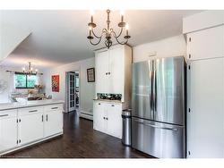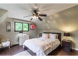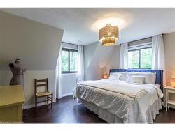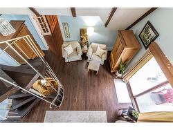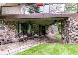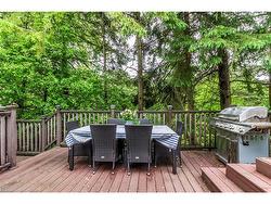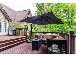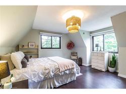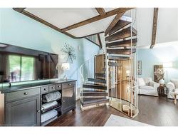 Nestled on a picturesque 0.7-acre lot surrounded by mature trees, this stunning A-frame home is a peaceful escape with the charm of a countryside lodge and the modern touches of a thoughtfully updated retreat. Located just minutes from Puslinch Lake, and a network of conservation trails, it’s a rare opportunity to enjoy the privacy of rural living with city convenience nearby. The home offers 6 bedrooms and 3 full bathrooms across three above grade levels, including the fully self-contained, 2-bedroom in-law suite on the main level — perfect for extended family, guests or a young adult craving their own private space. A custom walnut-encased spiral staircase winds through the heart of the home, connecting each level with architectural flair. Upstairs, cathedral ceilings, wood-burning fireplace and exposed beams give the living areas warmth and character. The updated kitchen features Corian countertops, stainless steel appliances, and overlooks the backyard oasis. Step out onto the two-tiered composite deck with sleek glass panel railings to take in views of vegetable gardens, a horseshoe pit, firepit, gazebos and 2 sheds for additional storage. It is the perfect space for year round entertaining. The expansive detached garage includes a workshop, and driveway offers 8 additional parking spaces to accommodate all of your guests. The second-floor balcony and third-floor terrace offer quiet spaces to sip your morning coffee or wind down with a book. With its welcoming charm and storybook setting, this property captures that cozy, timeless feeling like it belongs in a Hallmark movie.