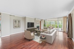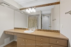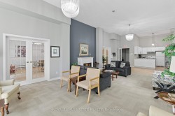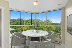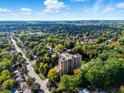 Welcome to The Highlands by the Park; 20 Berkley Road. Nestled atop a hill at the end of a quiet cul-de-sac in historic West Galt, this prestigious condominium offers tranquility, privacy, and sweeping views of nature and the city skyline. Overlooking a majestic woodlot, Victoria Park, and beyond, this building is one of Cambridge's hidden gems. This spacious 2,418 square foot, carpet-free unit offers a rare combination of size, layout, and natural light. With 3 generously sized bedrooms, 2 full bathrooms, and a thoughtfully designed floor plan, it's ideal for those seeking a blend of comfort and functionality. Step into an impressive foyer with mirrored walls and a large closet before entering the bright eat-in kitchen, complete with ceramic tile, crisp white cabinetry, built-in range top, track lighting and a cozy breakfast nook that looks out over lush greenery. The kitchen opens into a formal dining room with laminate flooring and elegant wall sconces; perfect for entertaining. The adjacent oversized living room features a wood-burning fireplace (sold in as-is condition) and leads to a bright all-season solarium with floor-to-ceiling windows, perfect as a den, office, or creative space. Down the hallway, you'll find three spacious bedrooms, including a large primary suite with two large windows, an expansive walk-in closet, and a 5-piece ensuite. A second 4-piece guest bath serves the remaining bedrooms. The in-suite laundry closet is conveniently tucked away off the main hallway. Building amenities include a rooftop terrace with panoramic views, ample seating, and barbecue, a party room with full kitchen and lounge area, meeting room, exercise room, and beautifully maintained common spaces. This unit includes one underground parking spot with a tandem storage locker. Don't miss this rare opportunity to live in a peaceful, elevated community surrounded by nature, just minutes from the charm and culture of West Galt.