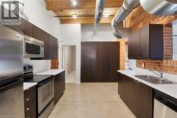 Rarely offered with TWO PARKING SPACES, this exceptional modern industrial-style condo at 206-85 Spruce Street in Cambridge offers a perfect balance of space, style, and convenience. The unit also includes a storage locker and features over 1,200 sq. ft. of thoughtfully designed single-level living, freshly painted throughout for a crisp, move-in-ready feel. Exposed brick, soaring ceilings, and oversized windows flood the interior with natural light, showcasing its warm yet bold urban character. The open-concept living and dining areas extend through double doors to a private balcony overlooking lush gardens, creating a peaceful and private retreat with beautiful nature views—ideal for morning coffee or effortless entertaining. The kitchen is appointed with contemporary cabinetry, generous counter space, and built-in storage, enhanced by distinctive industrial details. The primary bedroom offers a walk-in closet with direct access to the ensuite, while the second bedroom provides flexible space for guests, a home office, or creative use. Completing the unit is a convenient second bathroom, thoughtfully designed with the option to add a shower for enhanced functionality. Located just steps from downtown Cambridge and the vibrant Gaslight District, with shops, dining, and scenic trails nearby, this home presents a rare opportunity to enjoy refined industrial living in a highly walkable setting. (id:27)