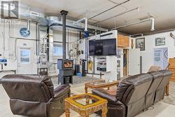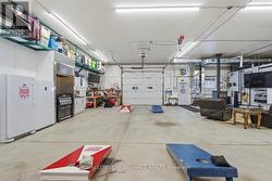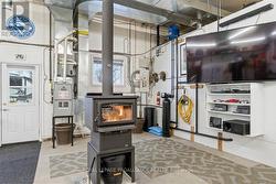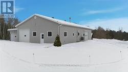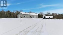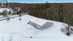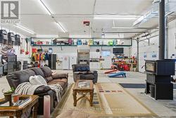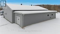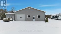 Welcome to a truly unique property that blends function, flexibility, and recreation. Designed to resemble a bungalow, this versatile building features four garage doors and a thoughtfully finished interior that extends well beyond typical garage space. Inside, you'll find a bedroom, a kitchen, and a 3-piece bathroom, along with a heat pump and woodstove for comfortable, year-round use. Set on 2.4 private acres, the property is bordered on one side by a small, meandering stream, enhancing the peaceful, natural setting. The layout and features make it an ideal man cave, workshop, family getaway, or recreational base, with plenty of room to gather, create, or unwind. With its adaptable design and private countryside location, this property also offers strong Airbnb or short term rental potential for those seeking a unique escape-style offering a rare opportunity for buyers looking for versatility, privacy, and lifestyle-driven space in a rural setting. (id:7525)