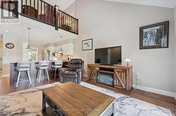 This gorgeous and spacious executive bungaloft townhome in Centre Wellington is truly one of a kind. Built in 2017, this home provides an exceptional blend of luxury and functionality with over 2300 sq ft of living space. The main floor boasts an open-concept layout with a soaring vaulted ceiling in the living area. The large primary bedroom is a serene retreat, complete with an ensuite and a walk-in closet. A convenient main-floor laundry room adds to the ease of single-level living. Step outside from the living room onto the covered and upgraded composite deck, where you can enjoy the peaceful backdrop. The amazing loft level features a large family room, another spacious bedroom, and a full bathroom. The finished walkout lower level is an incredible bonus, offering a huge recreation room, another full bathroom, and workshop/ storage space. The lower level walkout opens onto a private patio with a view of the serene greenspace and pond. This property stands out with its unique two-car garage, which includes a hobby mezzanine level AND a separate lower storage level which opens to the backyard as well. Located in a desirable south-end location, you are just minutes away from all the amenities you need and have the perfect commuting location. This is a truly special home that must be seen to be appreciated. Explore the online floorplans and virtual tour, and then book your private viewing today. (id:27)