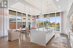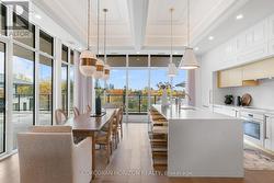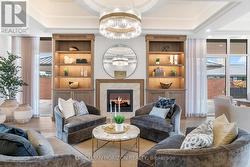 Introducing The Terrace Penthouse the premier residence at The Elora Mill Residences, offering an unmatched blend of indoor elegance and outdoor Luxury. This one-of-a-kind home features an expansive 2,400 sq.ft. wraparound terrace, complete with open-air and covered spaces, anchored by a striking double-sided stone fireplace perfect for year-round entertaining and relaxation. Inside, you will find 2289 sq.ft of living space and over $400,000 in premium upgrades which elevate every detail. Soaring 10-ft custom ceilings, softly curved architectural walls, and a dramatic two-sided fireplace set a sophisticated tone throughout the open-concept living space. Designed with the entertainer in mind, this home includes a wet bar, butlers pantry, and a chefs kitchen equipped with top-tier Miele appliances, extra-tall custom cabinetry, and an oversized island with bar seating. The open dining space is perfect for both casual dining or entertaining. The layout offers exceptional flexibility, with a spacious bonus room ideal for a home office, formal dining room or additional bedroom. The primary bedroom suite is thoughtfully positioned for privacy, featuring a walk-in closet and spa-inspired ensuite with a soaker tub, oversized glass shower, dual vanities, and private water closet. A second bedroom is located in its own wing with its own ensuite and sitting area providing comfort for guests or family members. Additional highlights include a grand entry with 2 closets, powder room, full laundry room, two parking spaces, and storage locker. Residents of The Elora Mill Residences enjoy resort-style amenities, including concierge service, a lobby coffee bar, gym and yoga studio, furnished terrace with river views, and an outdoor pool with spectacular views of the river. Located just steps from Elora's top restaurants, cafés, galleries, and shops this penthouse offers an unparalleled lifestyle in one of Ontario's most charming communities. (id:27)
