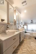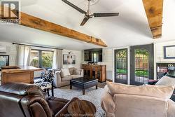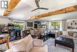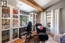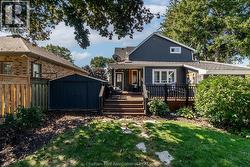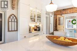 Showcasing timeless Victorian charm with thoughtful modern updates, this beautifully renovated 4-bedroom, 1.5-bath home is ideally situated on one of Chatham’s most prestigious streets. Set on a generous corner lot with a tree-lined driveway, the property offers exceptional curb appeal and a warm, welcoming presence. At the heart of the home, the kitchen serves as the central gathering space, featuring quartz countertops, a tiled backsplash, an oversized island, coffee bar, and glass-front cabinetry—perfectly balancing style and functionality. Surrounding this inviting space, the main floor offers a cozy family room, a versatile bedroom, a charming office/library, a convenient 2-piece bath with room to expand to a full bath, and a bright laundry area that opens to a welcoming deck with both sun and shade, while the back entrance provides seamless access to a functional basement mudroom below or the main living space above. Exposed brick throughout the home adds warmth, texture, and timeless character, highlighting its Victorian heritage while complementing the modern updates. Upstairs, three spacious bedrooms are complemented by a luxurious spa-inspired 5-piece bath with a soaker tub and separate shower. The basement offers abundant storage along with practical space for hobbies or tools. Natural light fills the home and extends outdoors to a fenced yard, garden shed, and covered front porch. The converted garage provides a flexible space ideal for additional living, a home office, home gym, or studio, and can easily be restored to a double-car garage. With its perfect blend of character, updates, and versatile living options, this Victorian gem truly has it all. (id:27)